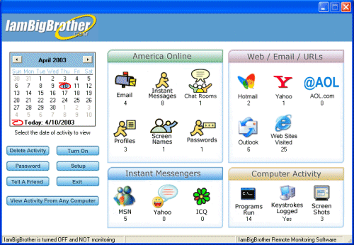 An undetectable keylogger needs stealth above everything else. Undetectable keyloggers are the dream of employers, detectives, and just about anyone what someone else does on his computer or computers he's required to monitor. No one would ever realize the undetectable keylogger is around – but that's what the word 'undetectable' stands for after all. Undetectable keylogger is your solution for recording all keystrokes made on your computer! Now you can record emails, websites, documents, chats, instant messages, usernames, passwords, and much more!IAmBigBrother is one of the first and longest standing computer monitoring programs on the market. IamBigBrother will monitor your children in Instant Messages, Chats, Emails, Web Site URLs and much more while undetected from the user.
